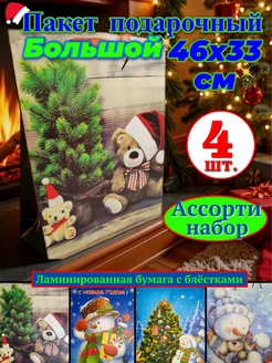 Пакет подарочный новогодний большой 33*46 набор 4 шт