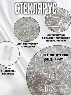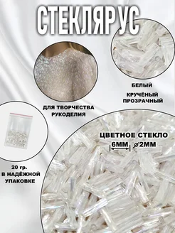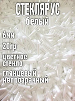 стеклярус трубчатый белый глянцевый 6мм 20гр