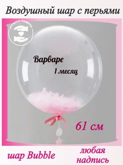 Воздушный шар с розовыми перьями 1 месяц Варваре