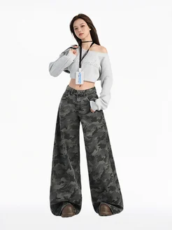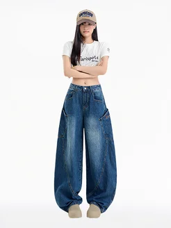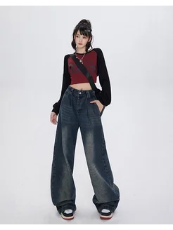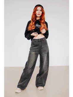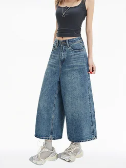 Джинсы кюлоты прямые с высокой посадкой укороченные