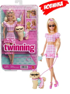 Кукла Барби Твиннинг с собакой в розовых нарядах
