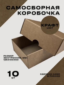 Коробка картон Т23Е самосборная 125X100X50 крафт 10 шт