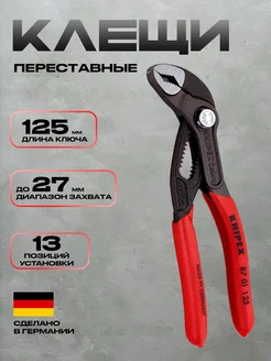 Клещи переставные COBRA с фиксатором 125 мм, обливные