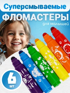 Фломастеры для детей смываемые, набор для рисования, 6 цв
