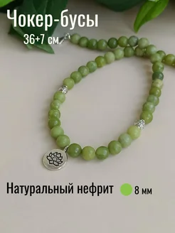 Чокер- бусы из натурального зеленого нефрита