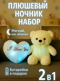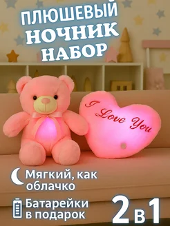 Плюшевая мягкая игрушка ночник Медведь и сердечко
