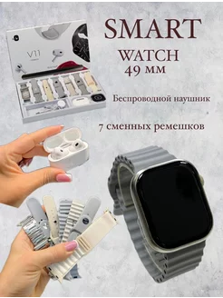 Смарт часы+Наушники+7 Ремешков набор 10 в 1 V11