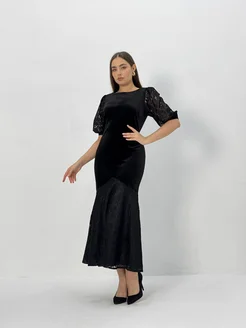 Велюровое женское вечернее платье миди