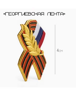 Значок «Георгиевская лента» 4 см с флагом РФ