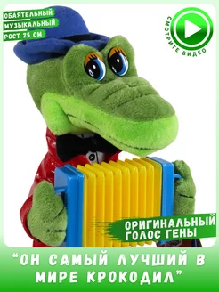 Крокодил Гена музыкальный с гармошкой и батарейками 25 см