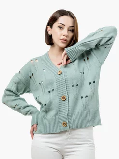 Кардиган оверсайз на пуговицах укороченный вязаный теплый