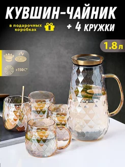 Кувшин для воды стеклянный + 4 кружки