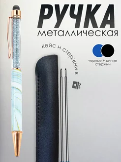 Ручка подарочная металлическая в футляре, голубая