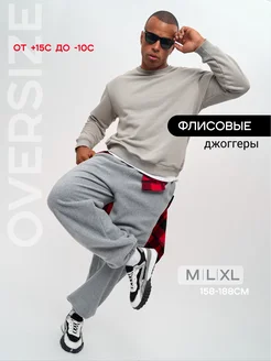 Спортивные штаны широкие теплые флисовые джоггеры оверсайз