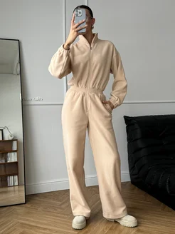 Комбинезон теплый флисовый осенний без капюшона оверсайз