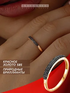 Кольцо золотое дорожка с черными бриллиантами