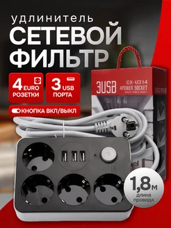 Удлинитель 2 метров Сетевой фильтр с Usb и Type-c