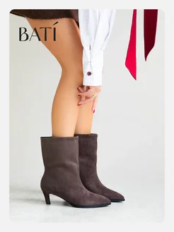 Ботильоны трубы демисезонные кожаные на низком каблуке