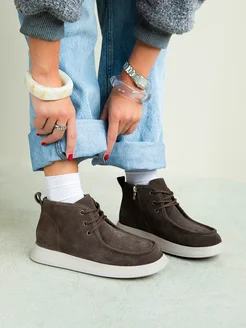 Полусапожки демисезонные на низком каблуке трубы кожаные