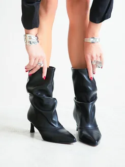 Ботильоны чулки демисезонные на каблуке рюмочка черные