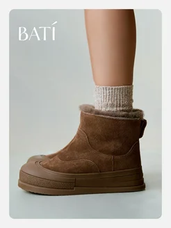 Ботильоны трубы зимние замшевые коричневые на каблуке
