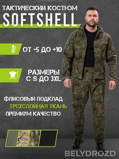 Тактический костюм камуфляжный софтшелл на флисе