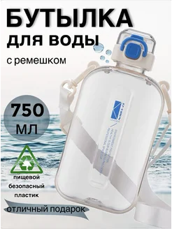 Бутылка для воды спортивная 750 мл плоская с ремешком