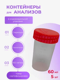 Контейнер для анализов баночка 60мл -5 шт