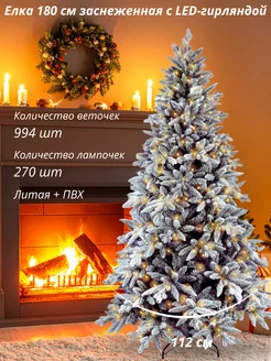 Елка искусственная 180 см литая заснеженная с LED-гирляндой