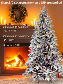 Елка искусственная 210 см литая заснеженная с LED-гирляндой