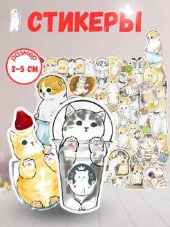 Стикеры наклейки милые котики 50 шт для творчества и подарка