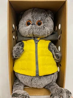 Кот Басик в жёлтой жилетке с капюшоном 30 см
