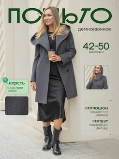 Демисезонное пальто с капюшоном удлиненное шерстяное