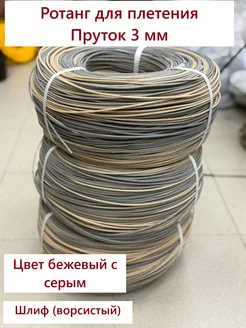 Ротанг пруток бежевый с серым шлиф 3 мм 0,4 кг