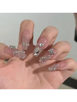 Накладные ногти с клеем и дизайном длинные набор 24 шт