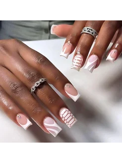 Накладные ногти с клеем и дизайном длинные набор 24 штуки