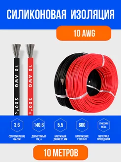 Силиконовый медный провод 10 AWG ( 10м красный + 10м черный)