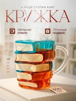 Стеклянная кружка для напитков в форме книги с 3D рисунком