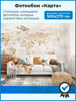 Фотообои флизелиновые на стену детские карта мира 3d 500х270