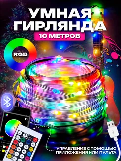 Гирлянда роса умная светодиодная 10м c пультом RGB LED