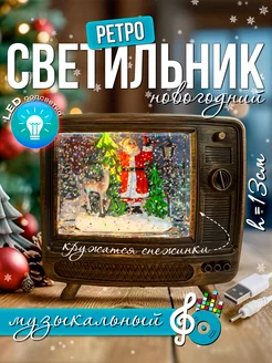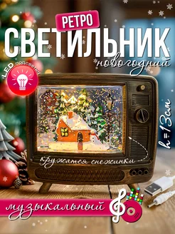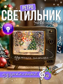 Фонарь новогодний музыкальный телевизор светильник со снегом