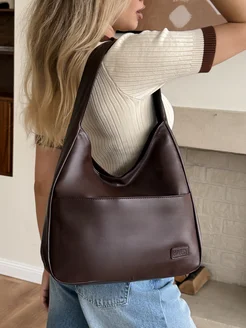 Сумка шоппер кожаная через плечо на кнопке шопер А4