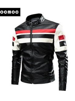 Мужская контрастная куртка из искусственной кожи