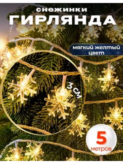 Гирлянда снежинка одноцветная новогодняя 5 метров