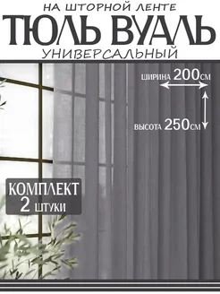 Тюль в гостиную и спальню на кухню длинная 200х250 см, 2шт