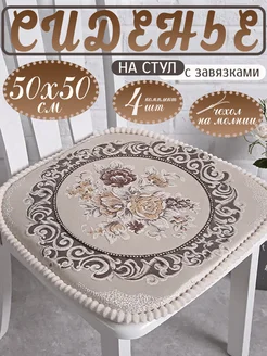 Подушка на стул 50х50см с завязками комплект 4 штуки