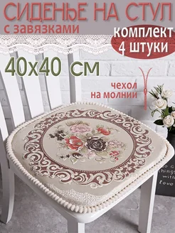 Подушка на стул 40х40см с завязками комплект 4 штуки