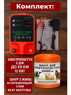 Электропастух проволока шнур (комплект), 12В-220в, 10-20км