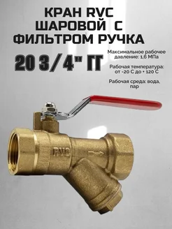 Кран шаровой 20 3 4" гг с фильтром ручка
