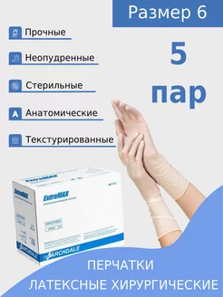 Перчатки хирургические ExtraMax 6 латекс стерильные, 5 пар
